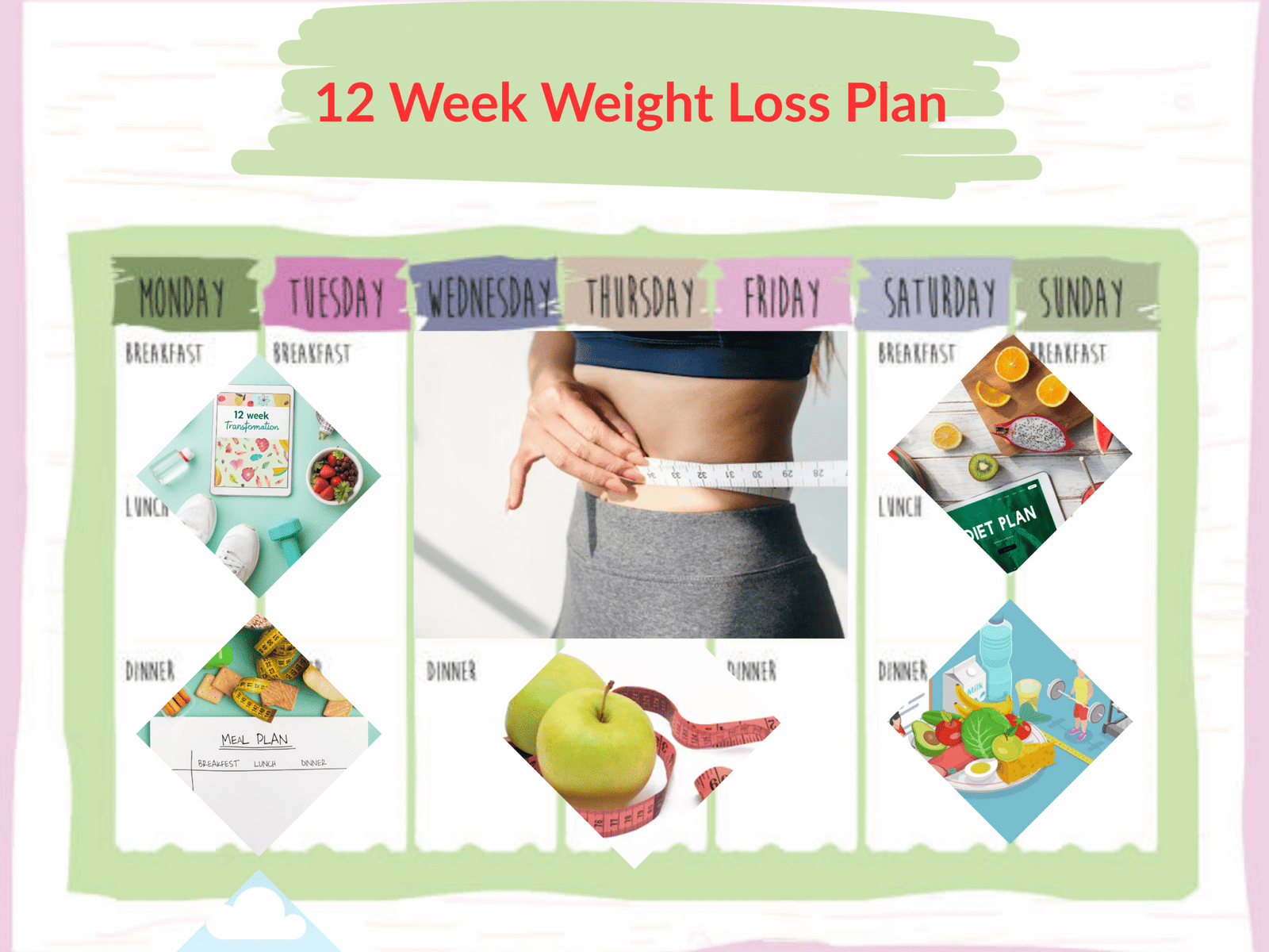 - A weekly roadmap covering breakfast, lunch, dinner, and snacks